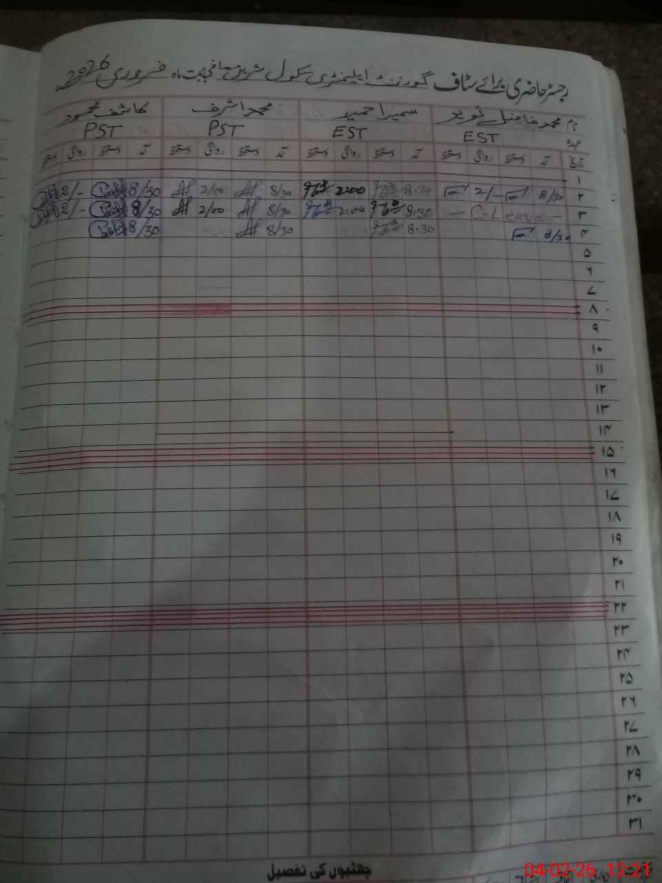 | CNIC | Full Name | Designation | R/C | Absence During Last Calender Month |