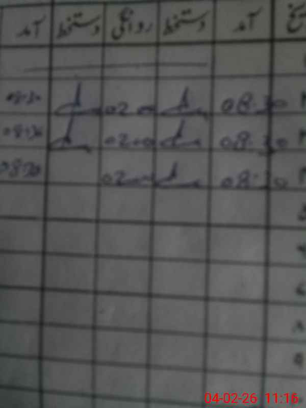 | CNIC | Full Name | Designation | R/C | Absence During Last Calender Month |