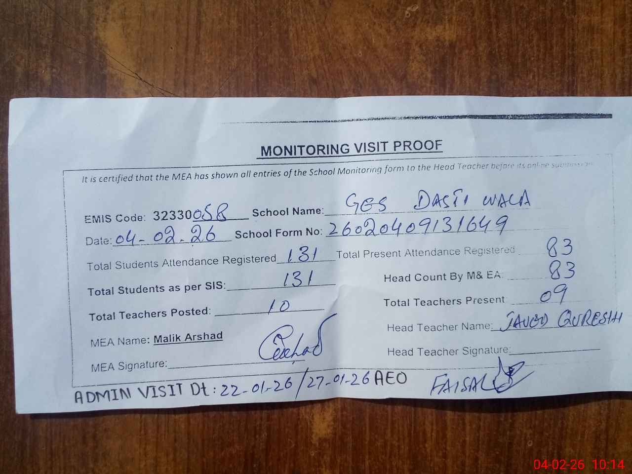 | EMIS Code: 32330058 | Name of School: GES DASTI WALA | |||