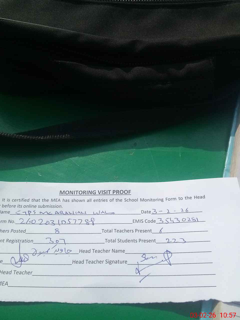 | EMIS Code: 35430281 | Name of School: GPS MC ARANIAN WALA | |||