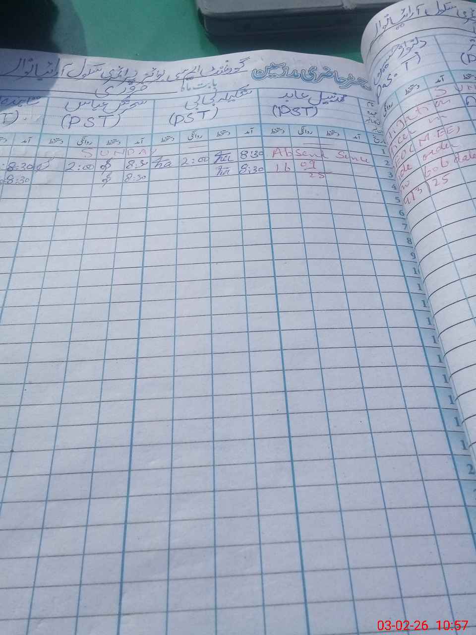 | 35**** | Mu**** Na**** Ab**** | PST Science/Maths | Regular | 0 | 0 | 0 | 0 | 0 | 0 | 0 | 0 | 0 | Absent (Un-Authorized) |