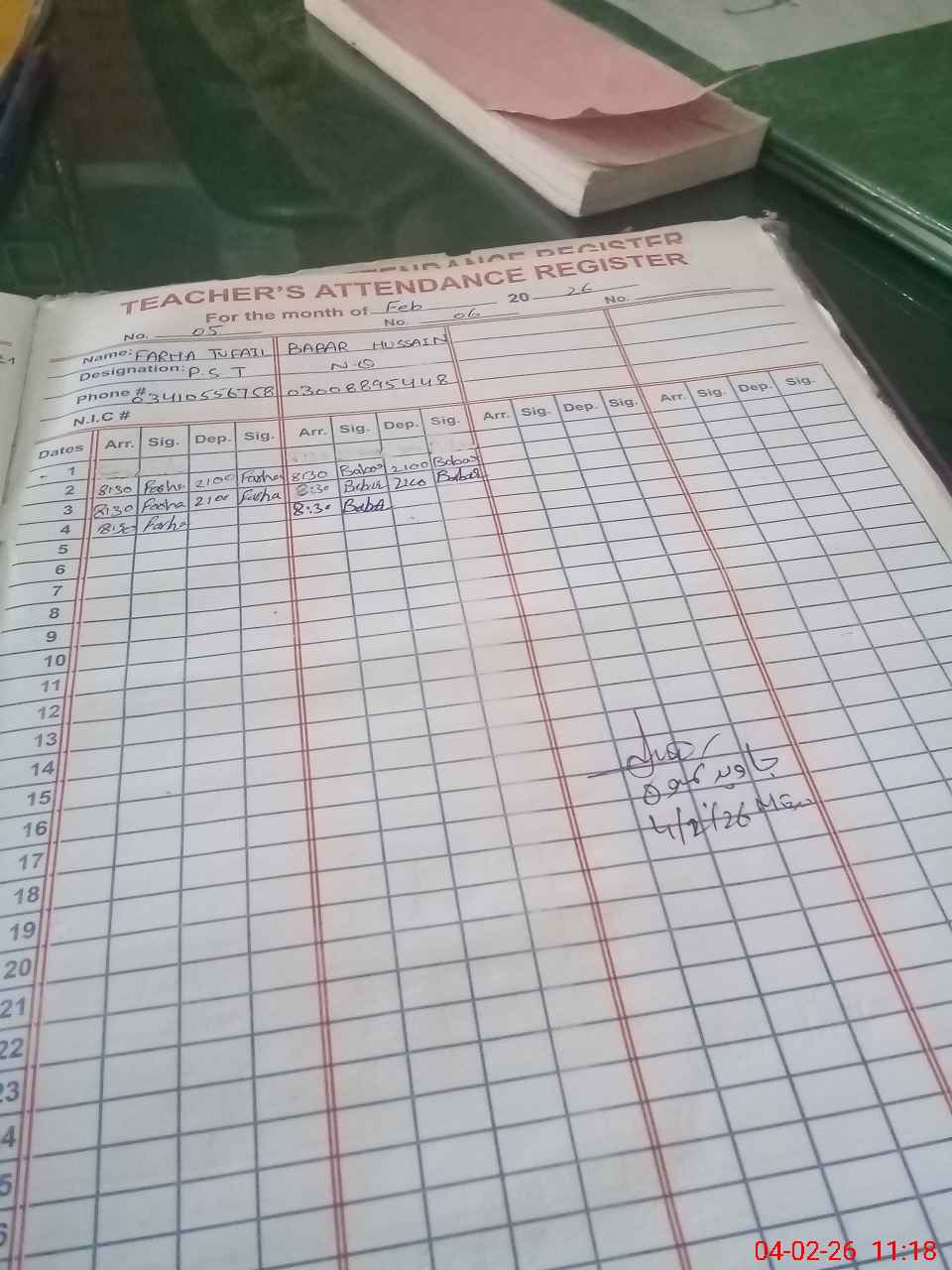 | Name: TA**** KH**** Designation: (School Headmaster's/Headmistress's) PST Phone/Cell Number: 03**** |