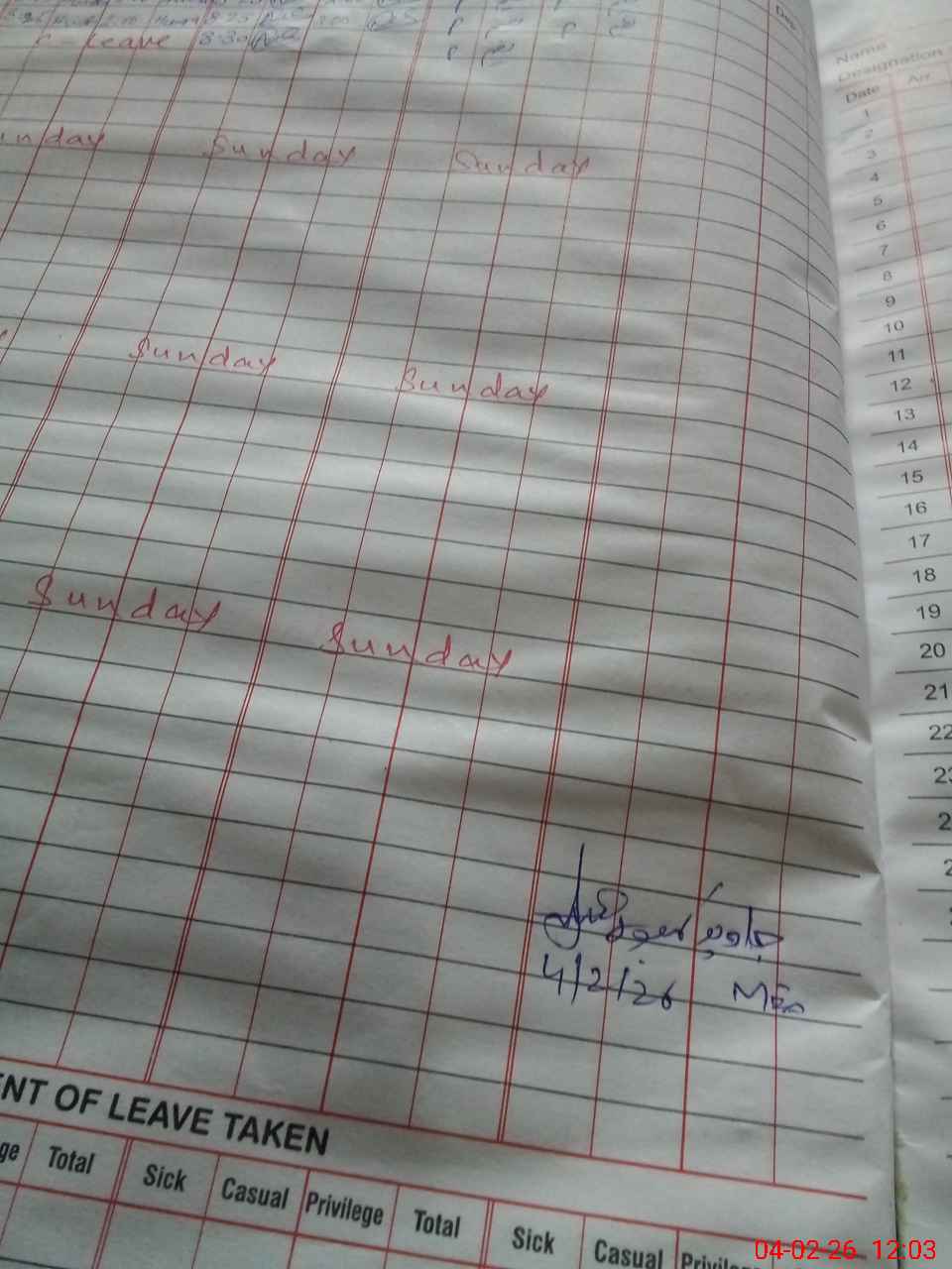 | Leave | Duty | Absent | Maternity | Medical | Ex- Pak |