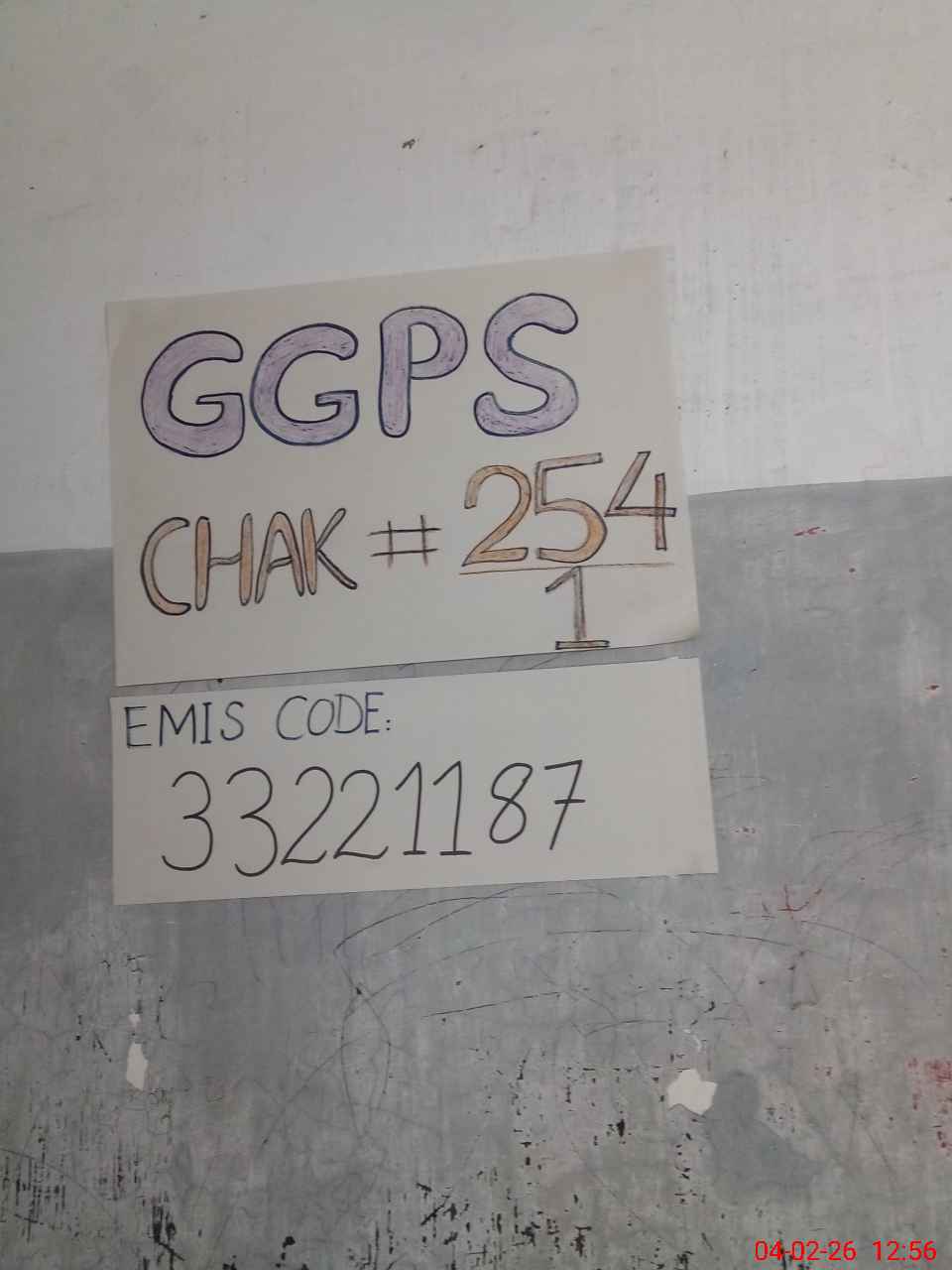 | EMIS Code: 33221187 | Name of School: GGPS CHAK NO 254 I | |||