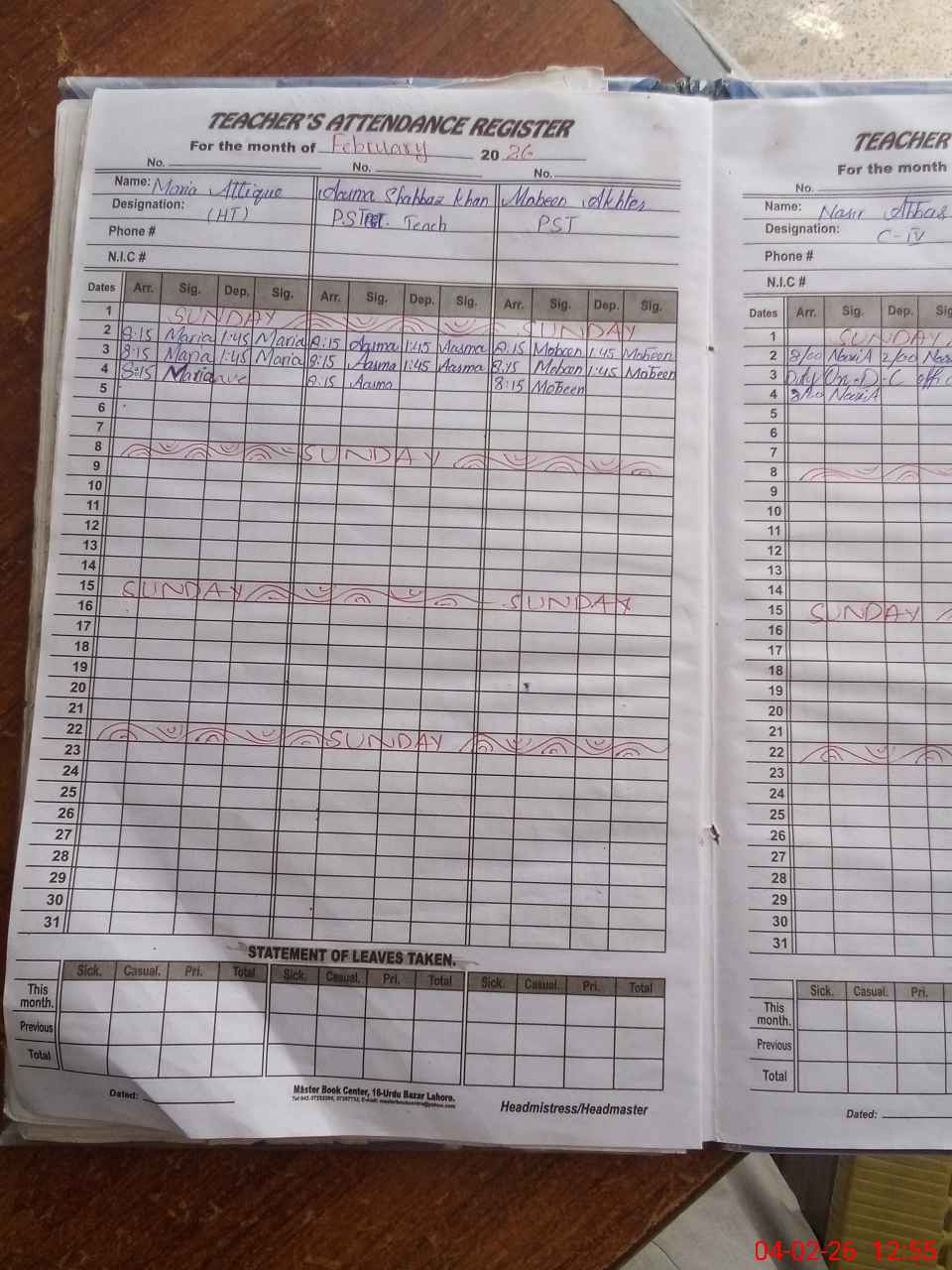| Name: MA**** AT**** Designation: (School Headmaster's/Headmistress's) PST Phone/Cell Number: 03**** |