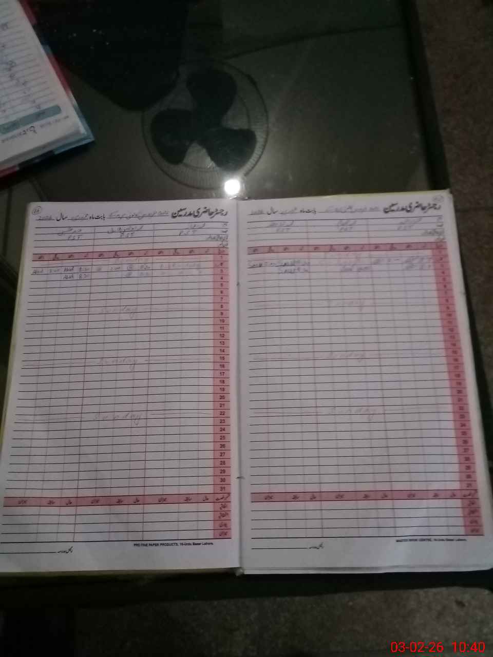 | CNIC | Full Name | Designation | R/C | Absence During Last Calender Month |