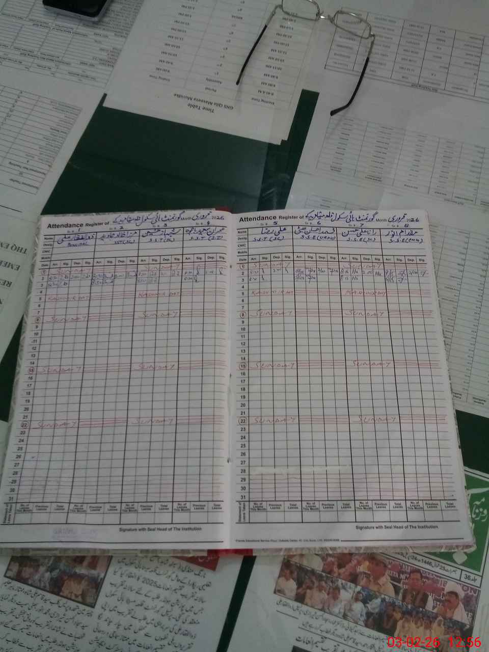 | CNIC | Full Name | Designation | R/C | Absence During Last Calender Month |