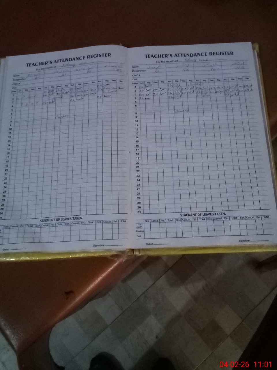 | Leave | Duty | Absent | Maternity | Medical | Ex- Pak |