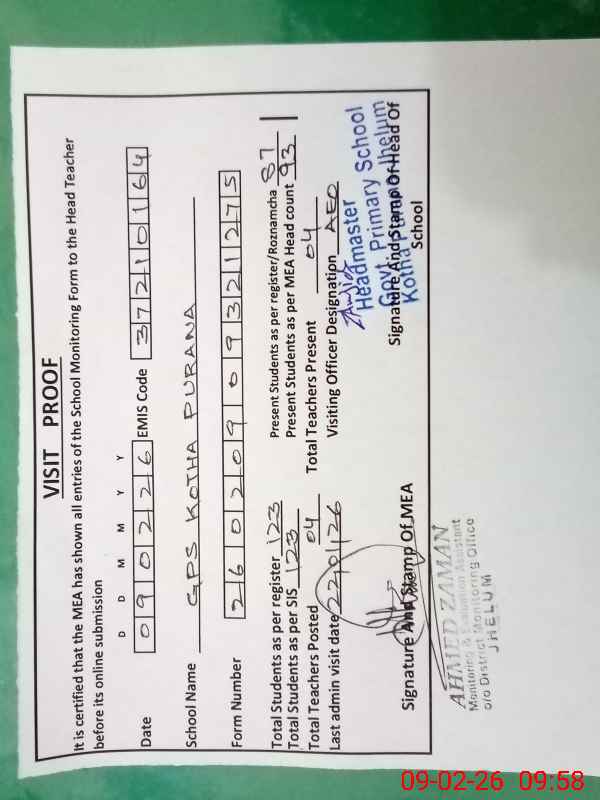 | EMIS Code: 37210164 | Name of School: GPS KOTHA PURANA | |||