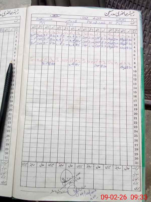 | CNIC | Full Name | Designation | R/C | Absence During Last Calender Month |
