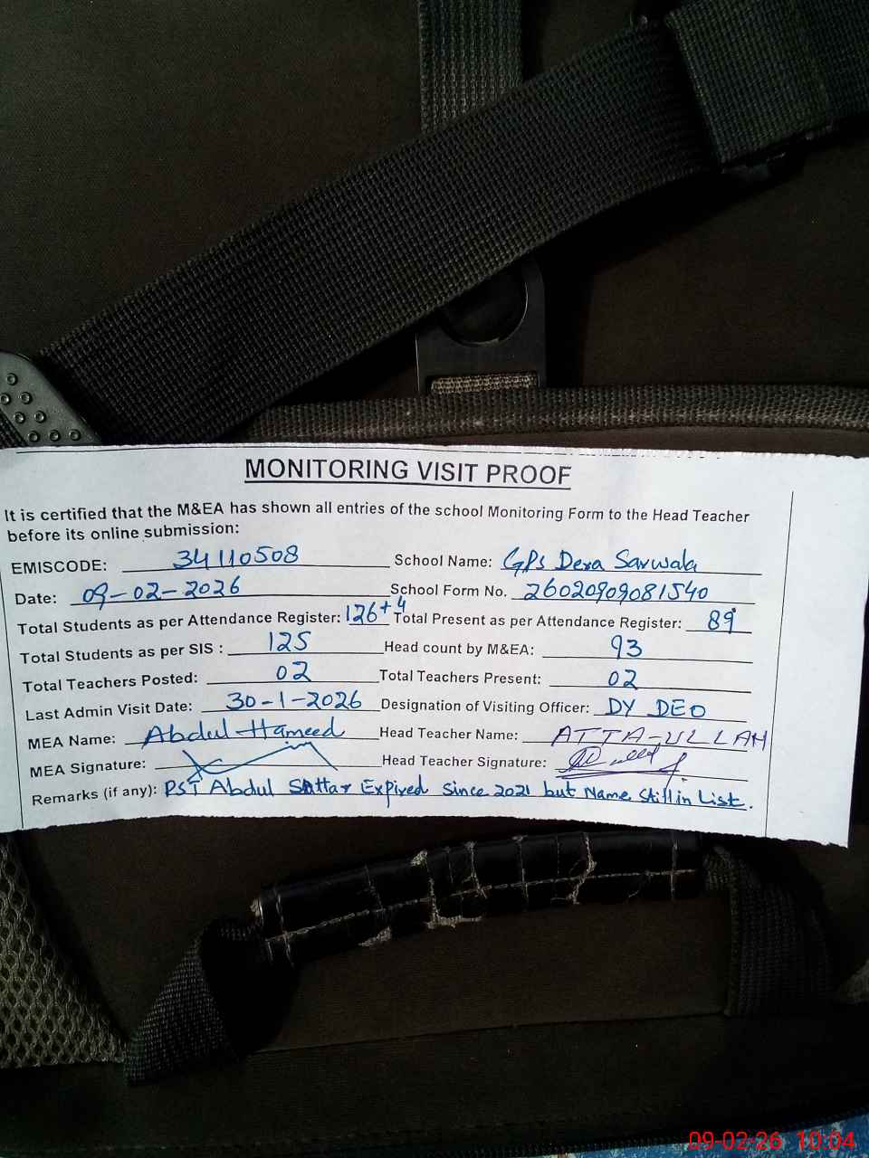 | EMIS Code: 34110508 | Name of School: GPS DERA SARWALA (GHULAM PURA) | |||