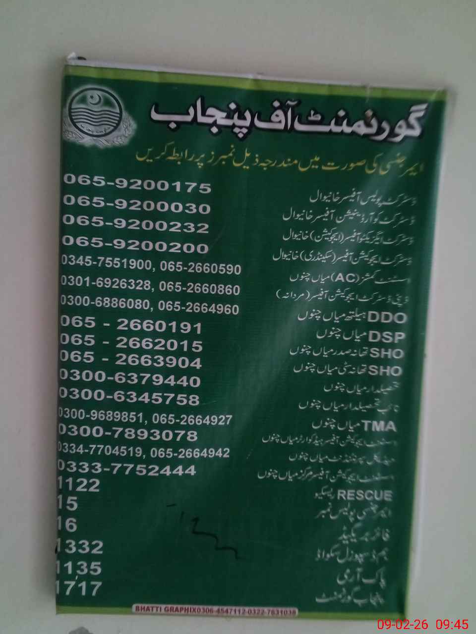 | District: KHANEWAL | Tehsil: MIAN CHANNU | Markaz: SECONDARY-WING | Level: High | |