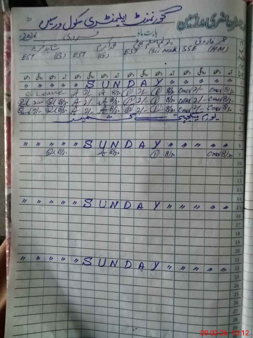| CNIC | Full Name | Designation | R/C | Absence During Last Calender Month |