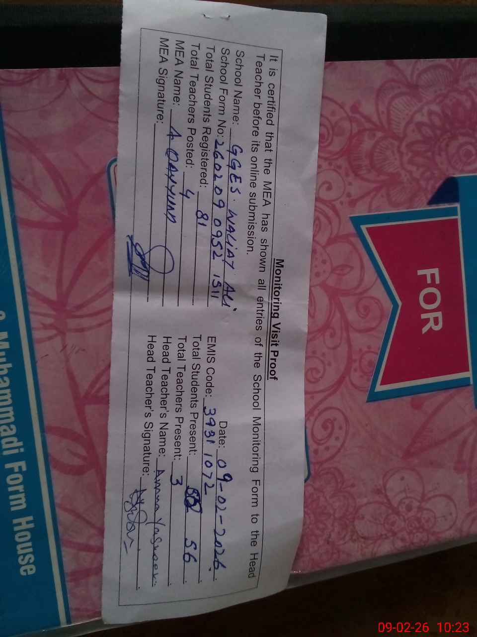 | EMIS Code: 39311072 | Name of School: GGES CHAK WALAIT ALI SHAH | |||