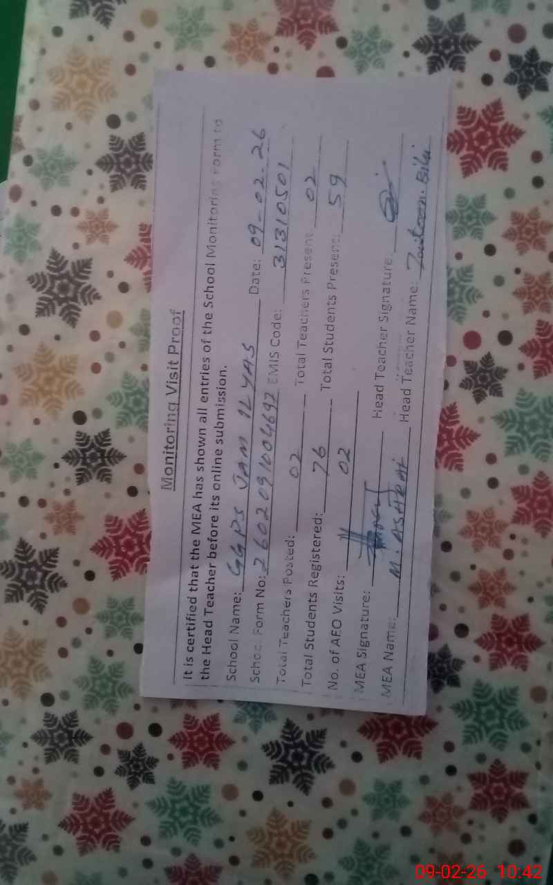 | EMIS Code: 31310501 | Name of School: GGPS JAM ILYAS | |||