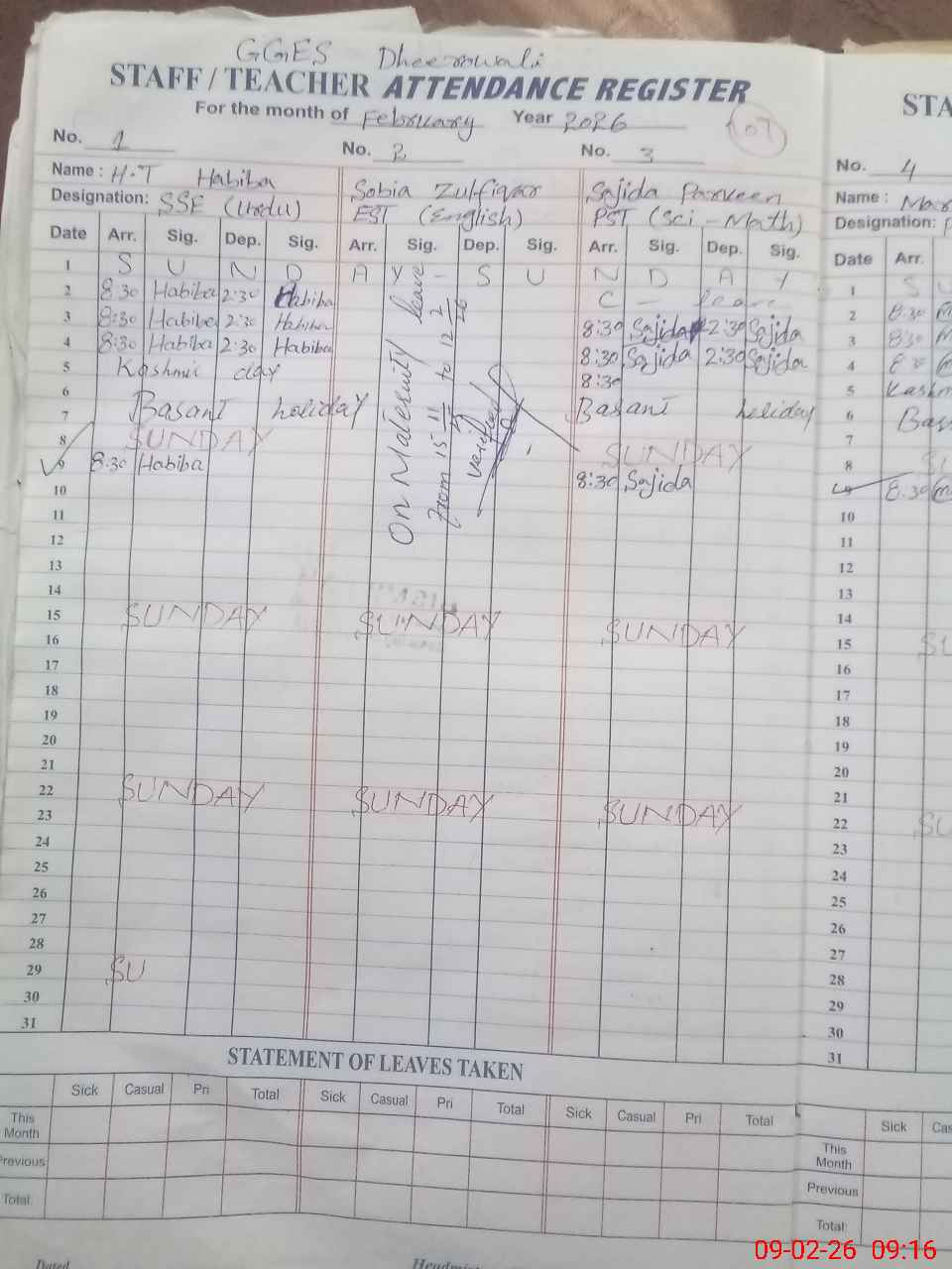 | Leave | Duty | Absent | Maternity | Medical | Ex- Pak |