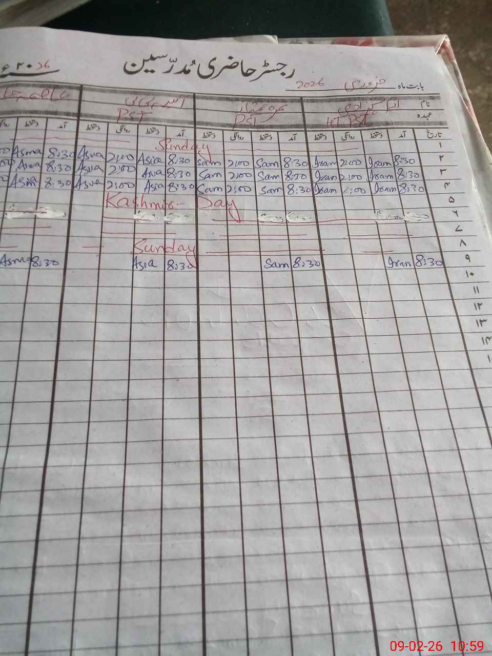 | Name: IR**** SH**** Designation: (School Headmaster's/Headmistress's) PST Phone/Cell Number: 03**** |