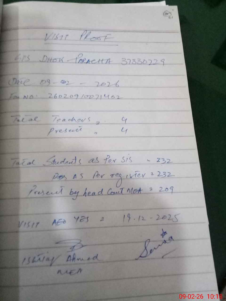 | EMIS Code: 37330229 | Name of School: GPS MC DHOK PARACHA | |||