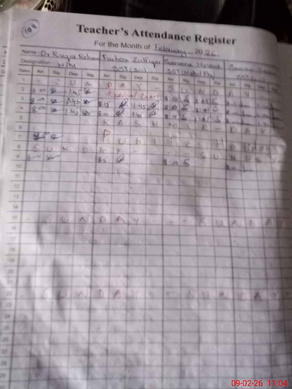 | CNIC | Full Name | Designation | R/C | Absence During Last Calender Month |
