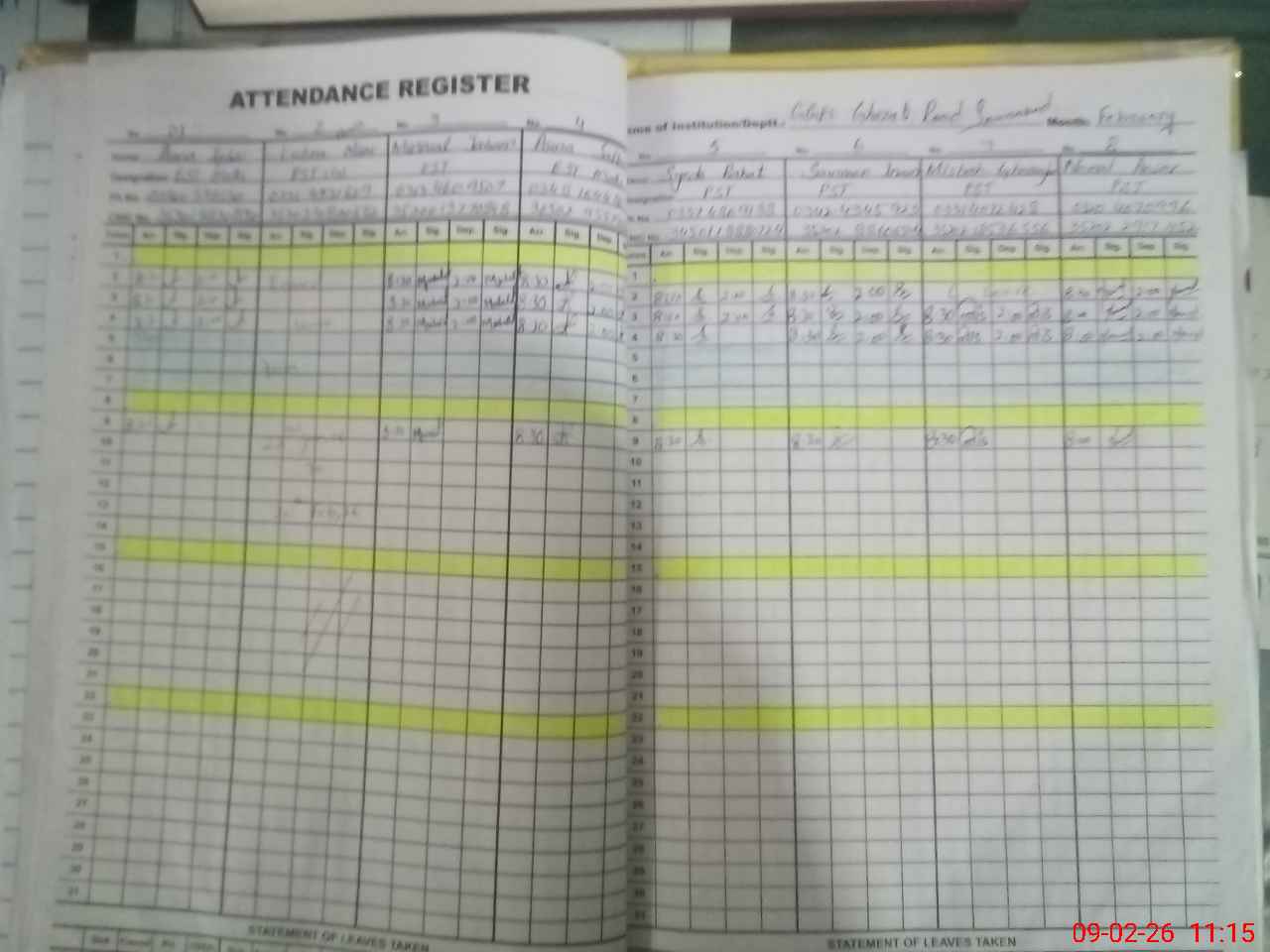 | CNIC | Full Name | Designation | R/C | Absence During Last Calender Month |
