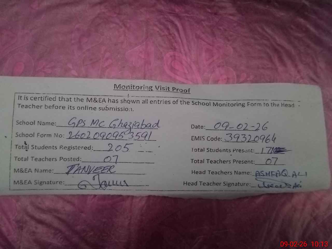 | EMIS Code: 39320964 | Name of School: GPS MC GHAZI ABAD | |||