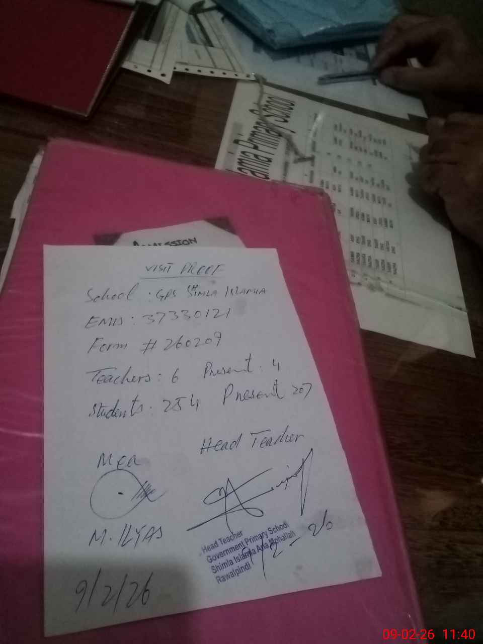 | Attendance Register | Head Teacher | MEA with School | Visit Proof |