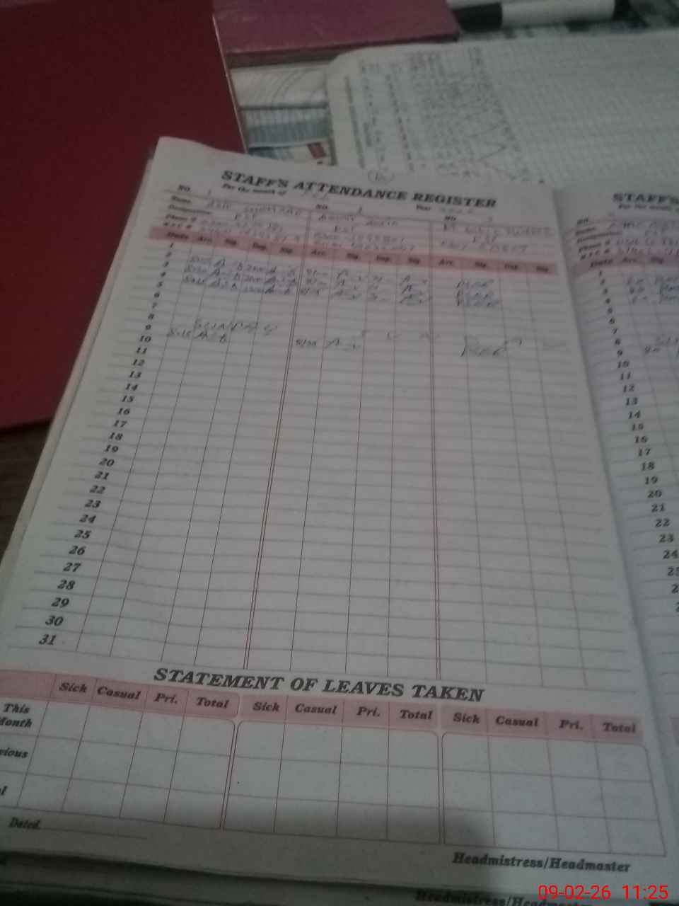 | Leave | Duty | Absent | Maternity | Medical | Ex- Pak |