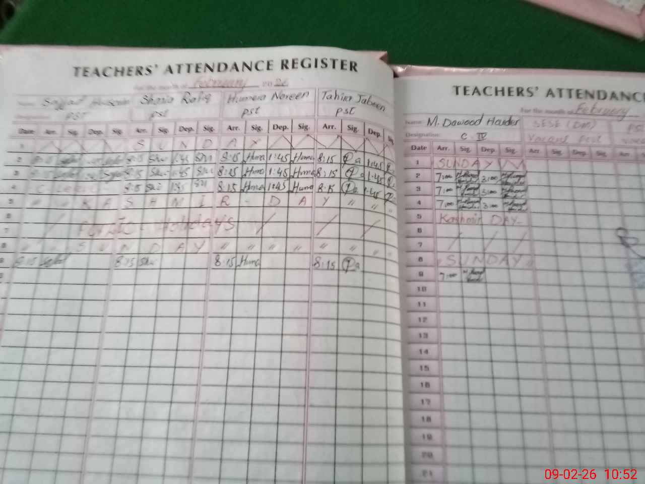 | CNIC | Full Name | Designation | R/C | Absence During Last Calender Month |