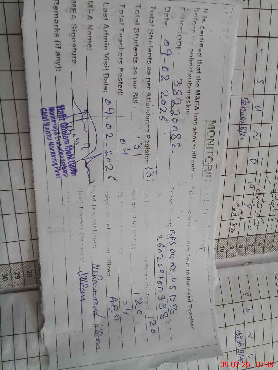 | Monitoring Date: 09-02-2026 | Start Time: 09-02-2026 09:39 AM | End Time: 09-02-2026 10:14 AM | Name of MEA: HA**** GH**** MO**** UDDI**** | |