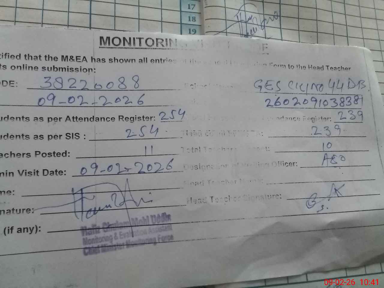 | EMIS Code: 38220088 | Name of School: GES CHAK NO. 44/DB | |||