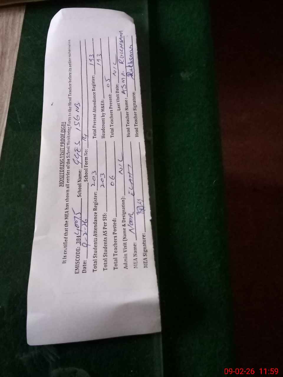| EMIS Code: 38440075 | Name of School: GGES CHAK NO 156 NB | |||
