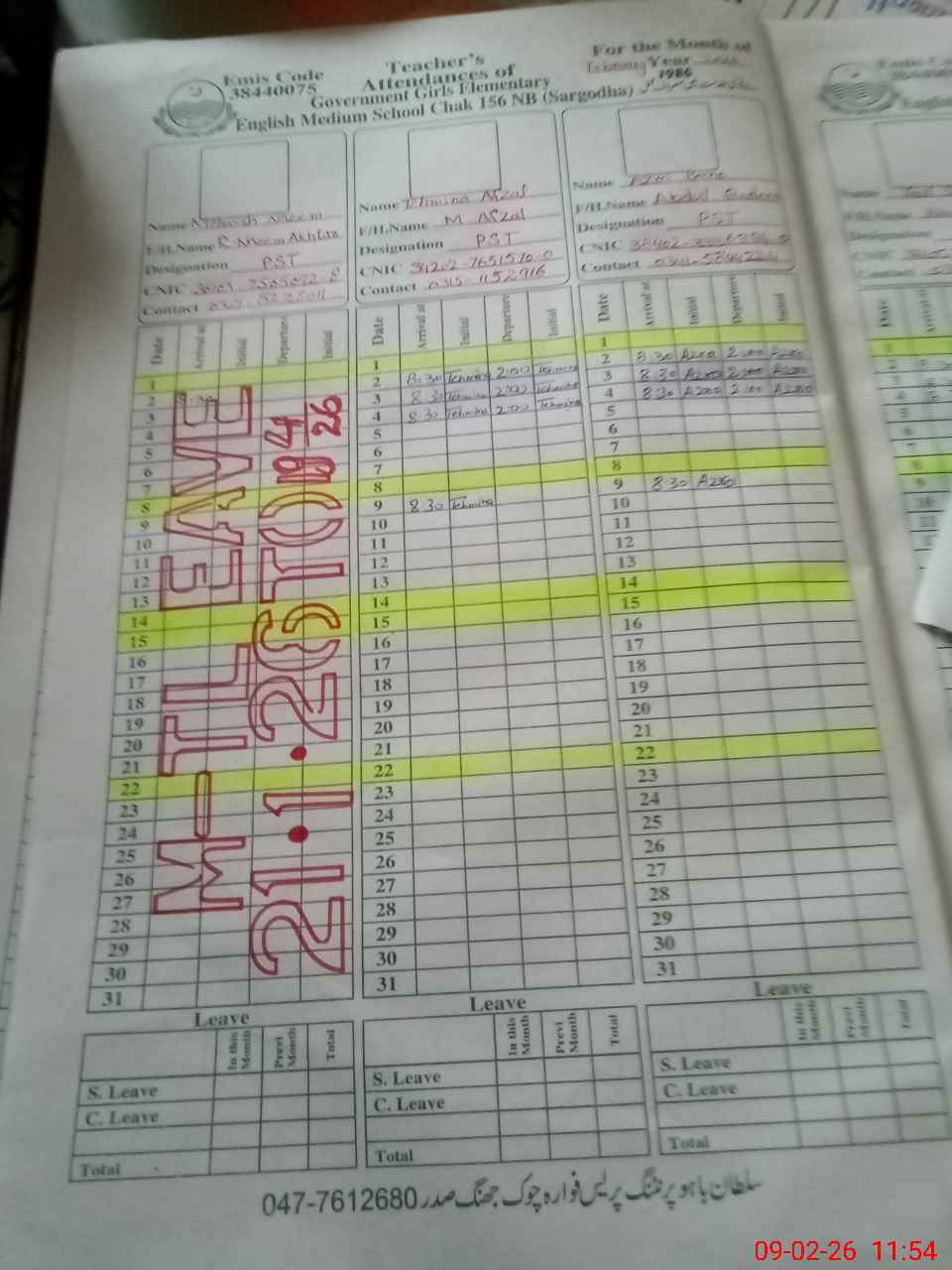 | District: SARGODHA | Tehsil: SILLANWALI | Markaz: SHAH NIKDAR - FEMALE | Level: Middle | |
