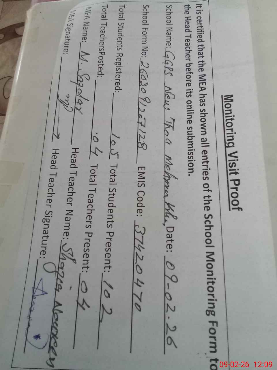 | EMIS Code: 37420470 | Name of School: GGPS THOHA MEHRAM KHAN | |||
