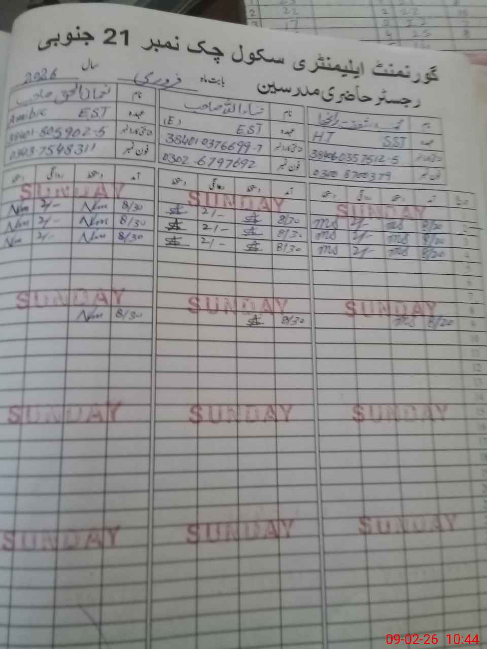 | Name: Mu**** Sh**** Designation: (School Headmaster's/Headmistress's) SST Arts Phone/Cell Number: 03**** |