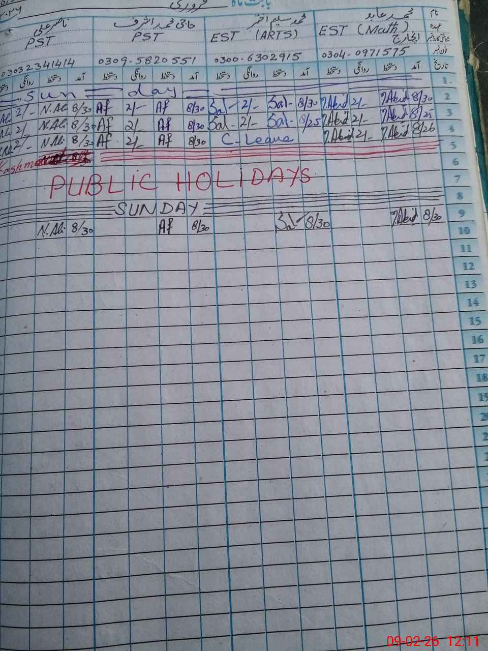 | Name: Mu**** Ay**** Designation: (School Headmaster's/Headmistress's) Headmaster Phone/Cell Number: 03**** |