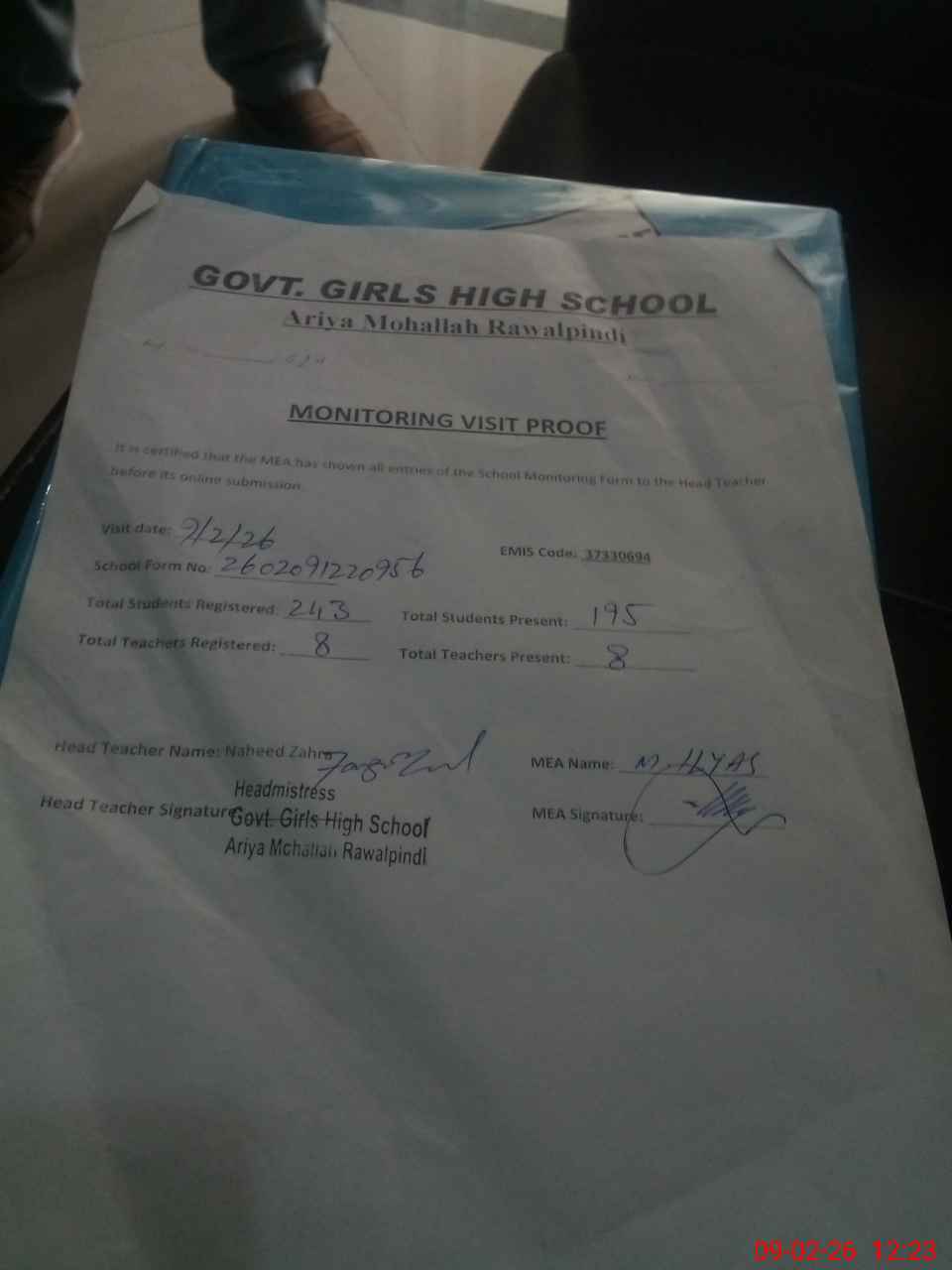 | EMIS Code: 37330694 | Name of School: GGHS ARIYA MOHALLAH | |||