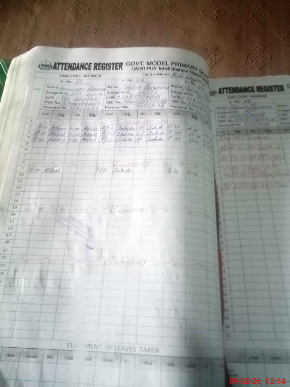 | EMIS Code: 38430438 | Name of School: GMPS HAYAT PUR | |||