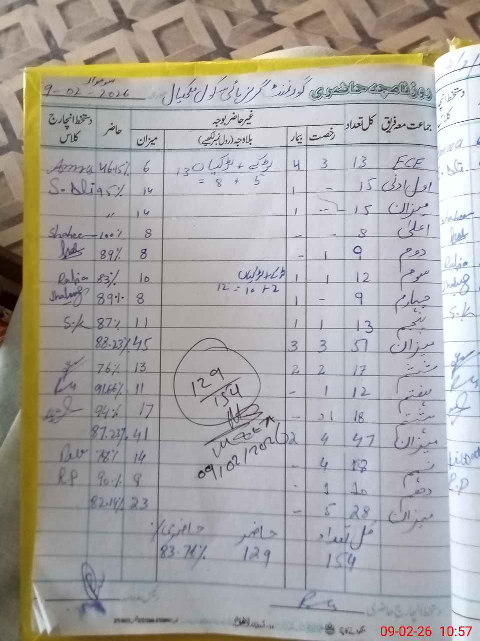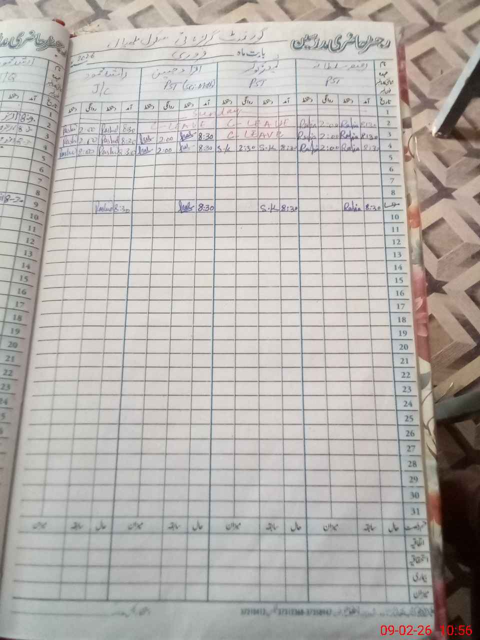 | CNIC | Full Name | Designation | R/C | Absence During Last Calender Month |