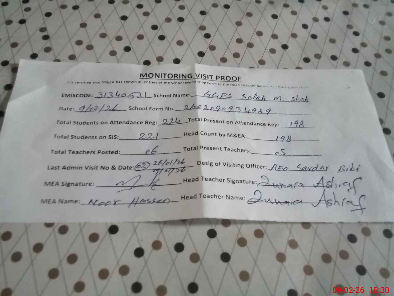 | EMIS Code: 31340531 | Name of School: GGPS SALEH MUHAMMAD SHAH | |||