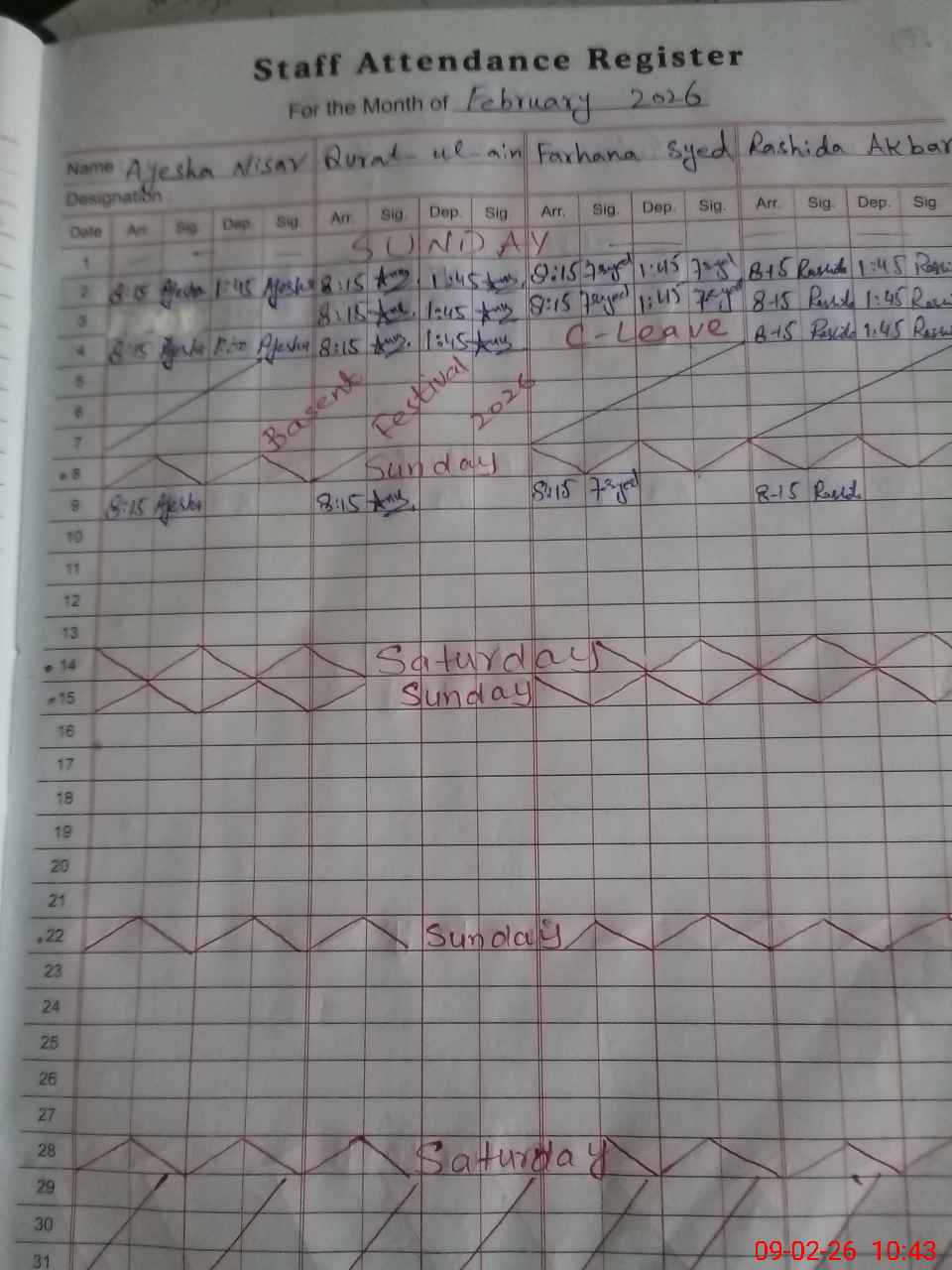 | CNIC | Full Name | Designation | R/C | Absence During Last Calender Month |