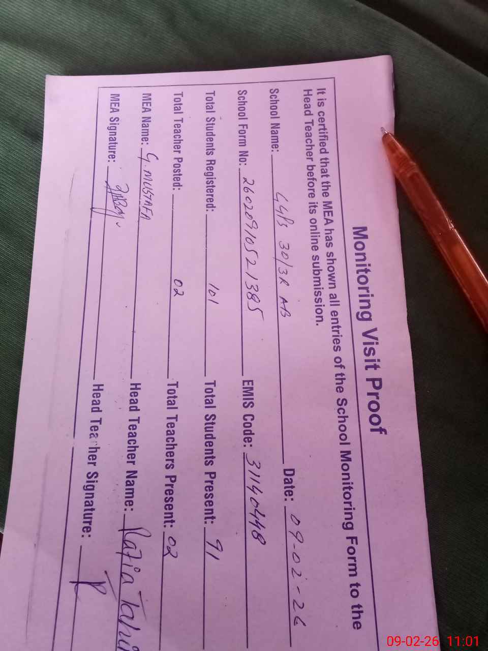 | EMIS Code: 31140448 | Name of School: GGPS CHAK 30/3-R AB | |||
