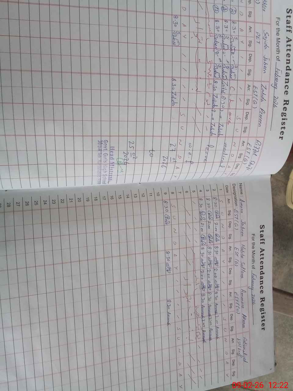 | Remarks (Use Separate Page if Required): Teacher Riffat shafi is on medical leave but her leave not approved by competent authority | |||||