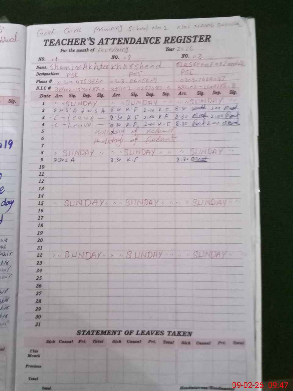 | Name: SH**** AK**** Designation: (School Headmaster's/Headmistress's) PST Phone/Cell Number: 03**** |