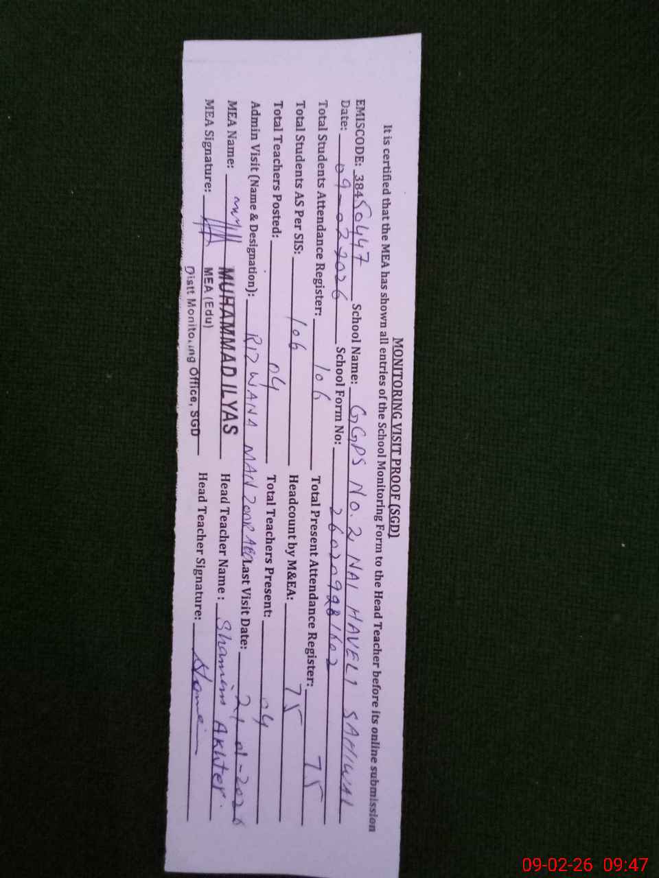| EMIS Code: 38450447 | Name of School: GGPS NO.2 SAHIWAL NAI HAVELI | |||