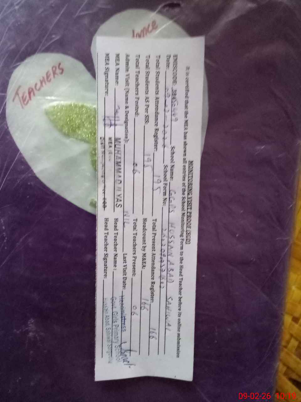 | EMIS Code: 38450449 | Name of School: GGPS HUSSAIN ABAD SAHIWAL | |||