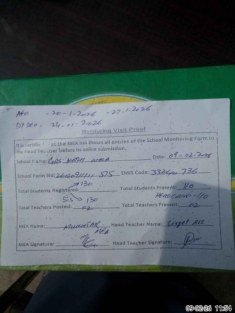 | EMIS Code: 33240736 | Name of School: GPS KOTHI WALA | |||