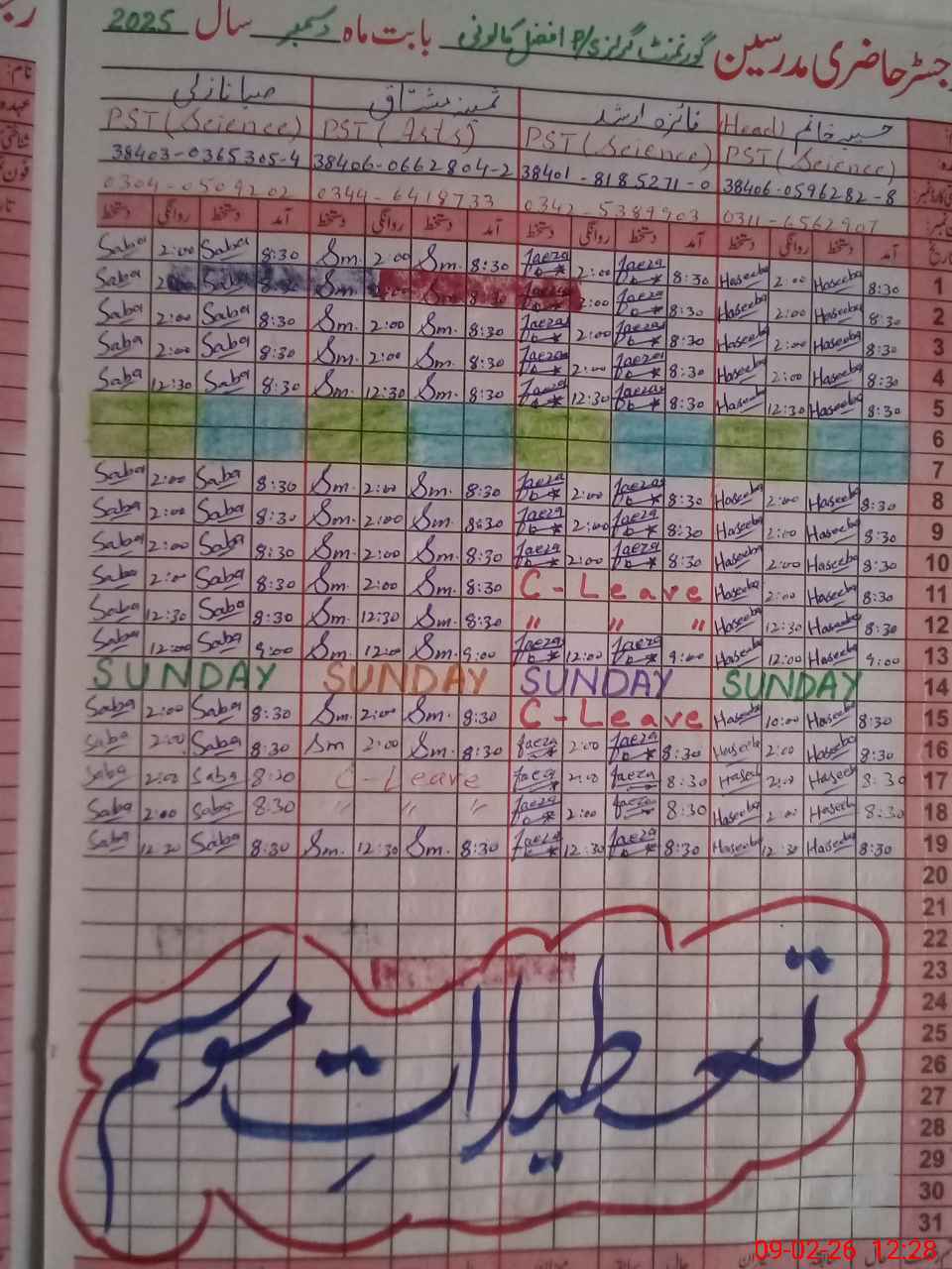 | Name: HA**** KH**** Designation: (School Headmaster's/Headmistress's) PST Phone/Cell Number: 03**** |