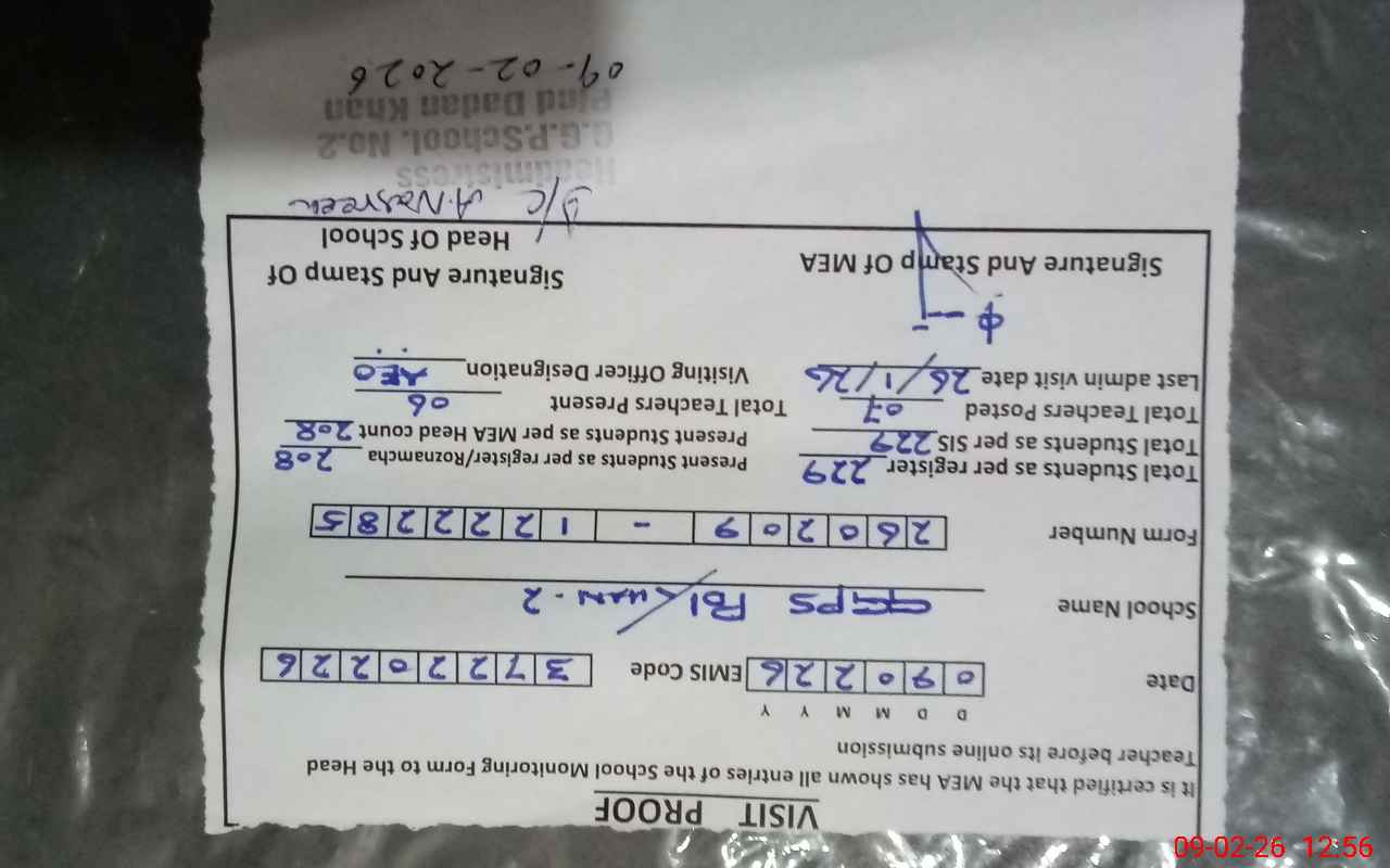 | EMIS Code: 37220226 | Name of School: GGPS NO 2 P.D KHAN | |||