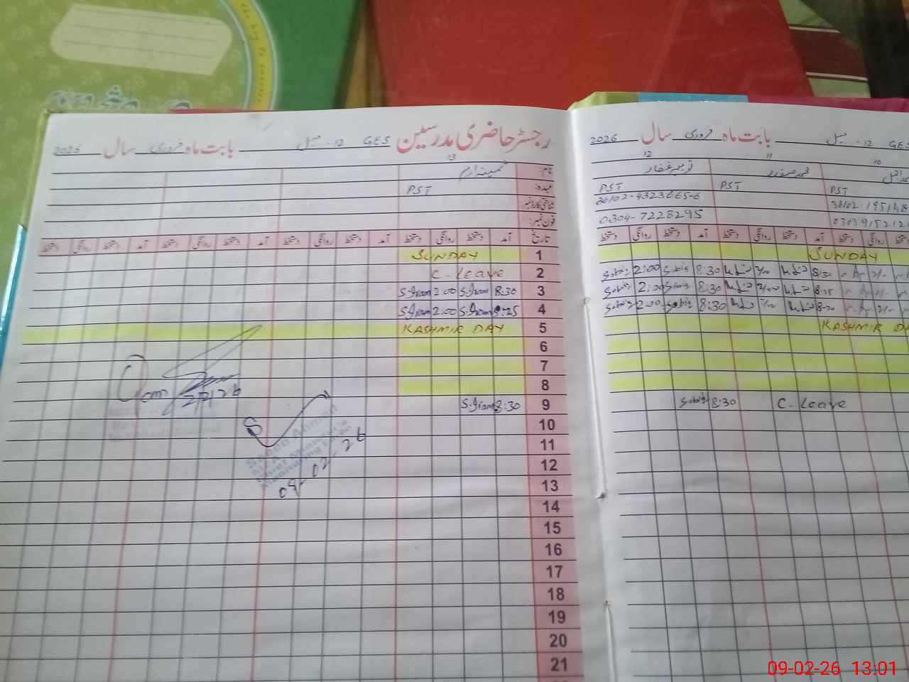 | CNIC | Full Name | Designation | R/C | Absence During Last Calender Month |