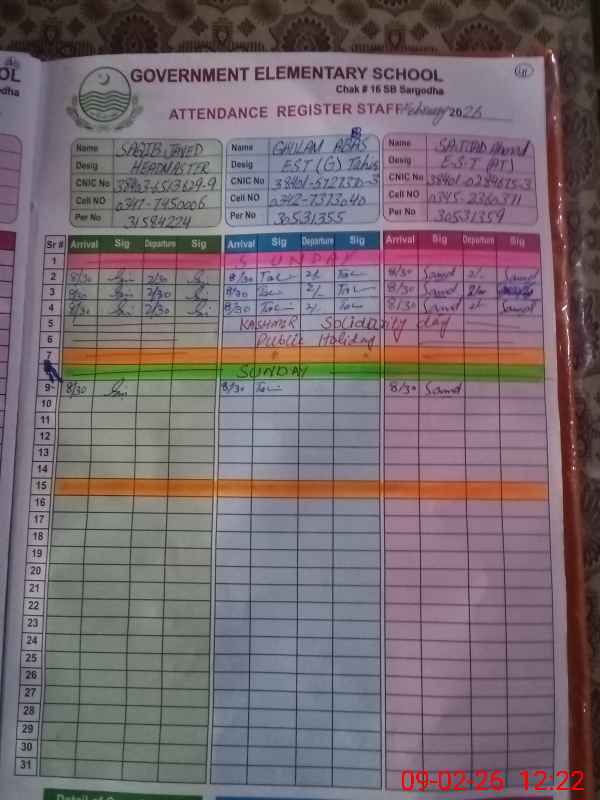 | EMIS Code: 38410052 | Name of School: GES CHAK NO.16 SB | |||
